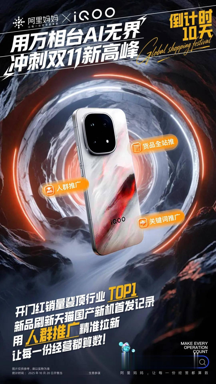 领先品牌已通过万相台AI无界实现对“摇摆人群”的精准沉淀,为冲刺蓄力。iQOO构建了"人群蓄水-智能转化-持续触达"的增长闭环,预热期通过人群推广,广泛蓄积意向用户,爆发期依据数据回流,将高意向人群通过关键词推广与货品全站推进行高效承接,实现对摇摆人群的精准触达。