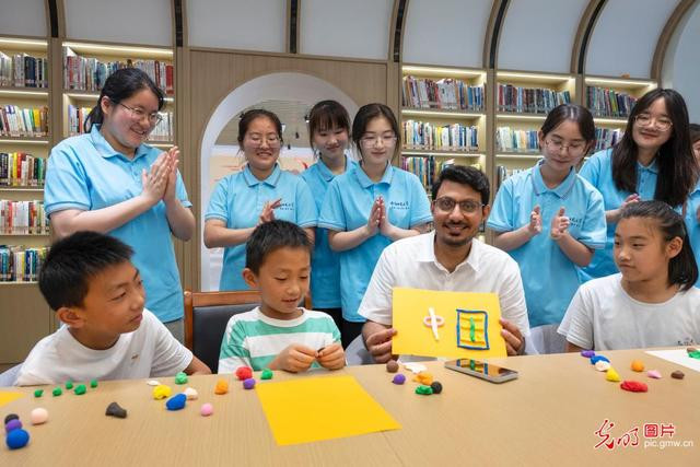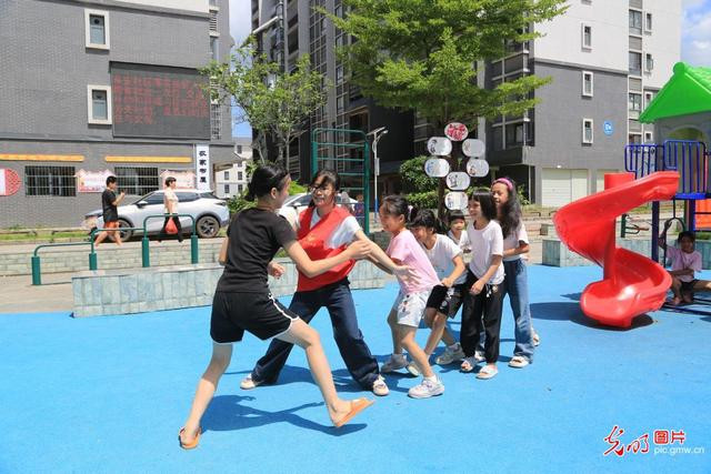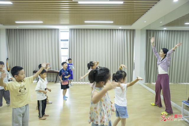 在江西省共青城市未成年人救助保护中心的暑期托管班,孩子们在大学生志愿者的悉心陪伴与辅导下,积极参与舞蹈、口才、暑假作业辅导等各类课程,开启了一段充实而有趣的暑期时光。(潘成摄/光明图片)